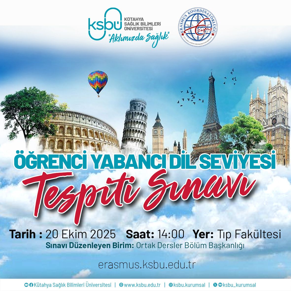 Erasmus+ Öğrenim Hareketliliği için Öğrenci Yabancı Dil Seviyesi Tespiti Sınavı. Ayrıntılar için tıklayınız 01 Ekim 2025, Çarşamba / 17 defa okundu.